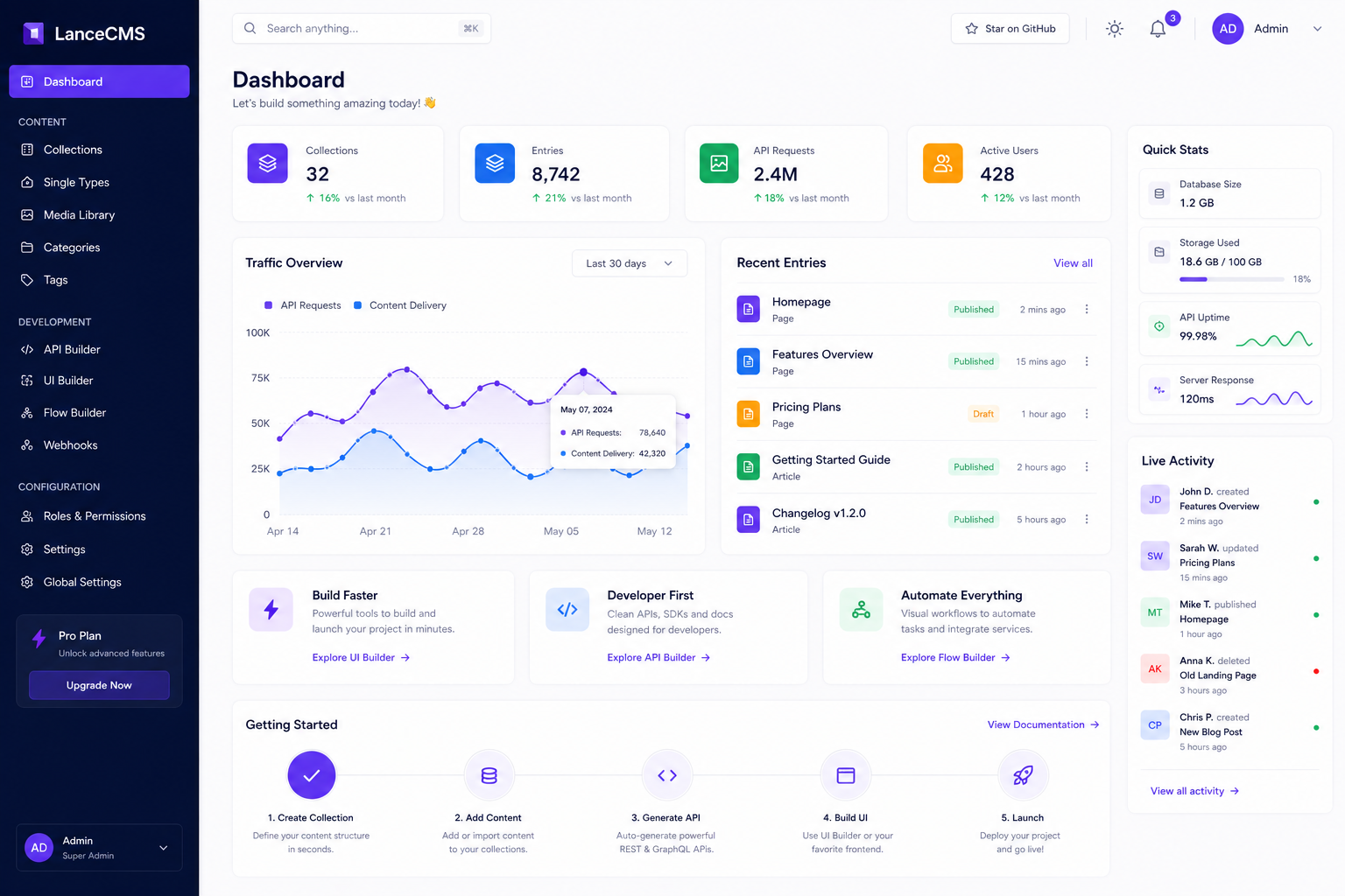 LanceCMS is not publicly launched yet, but it is already powering real-world applications. The core architecture is stable and in active use, while we continue refining performance, developer experience, and advanced capabilities.