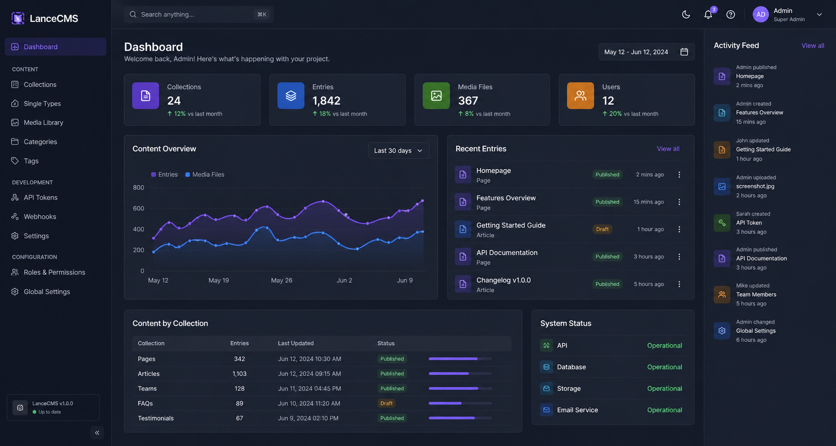 LanceCMS is not publicly launched yet, but it is already powering real-world applications. The core architecture is stable and in active use, while we continue refining performance, developer experience, and advanced capabilities.