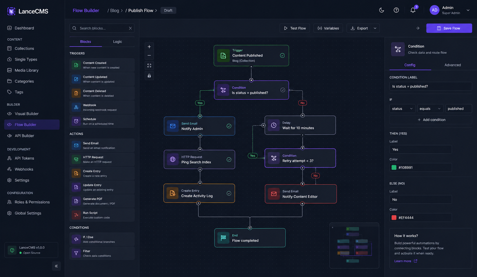 LanceCMS is a developer-first platform to define backend, generate APIs, build UI using JSON, and automate workflows — powering both web and Flutter apps.